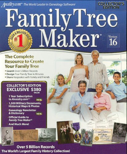 With Family Tree Maker Version 16 (Collector's Edition), you can access more than 5 billion records through Ancestry.com as you research your family's history. The best-selling genealogy program for 15 straight years, Family Tree Maker lets you access some of the world's largest online data based, including the U.S. Records Collection, Naturalization Records, Immigration Records and much more.